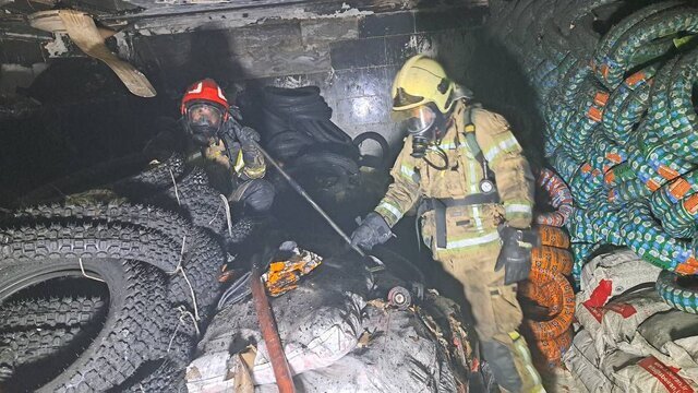 وی ادامه داد: آتشنشانان ظرف مدت ۲ دقیقه به محل رسیده و مشاهده کردند که در زیرزمین یک ساختمان چهار طبقه مسکونی-تجاری، مقدار زیادی لوازم یدکی موتورسیکلت و لاستیک در حجم بالا نگهداری میشد که در بستهبندیهای مقوایی شعلهور شده و بخش زیادی از انبار در آتش میسوخت.